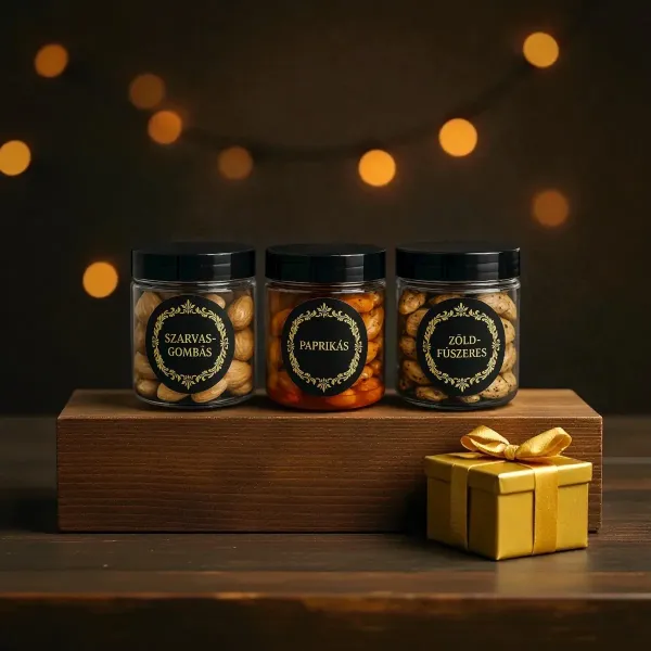 Ez a doboz lehet ajándék, ha valakit meglepnél. De lehet akár kóstoló, ha csak nem tudod eldönteni, melyik legyen a "kedvenc". Négy íz, négy hangulat - egy közös élmény. Indula a mandula! A díszdoboz tartalma: 4x 50g szarvasgombás, paprikás, zöldfűszeres, sós mandula díszcsomagolásban. Bővebben| Cikkszám | c-sz-32 |